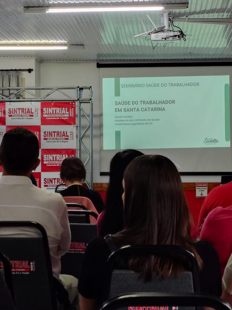 Nos dias 18 e 19 de março de 2026, foi realizado, em Concórdia (SC), o Seminário Saúde e Segurança dos Trabalhadores, promovido pelo SINTRIAL em parceria com entidades representativas da classe trabalhadora.