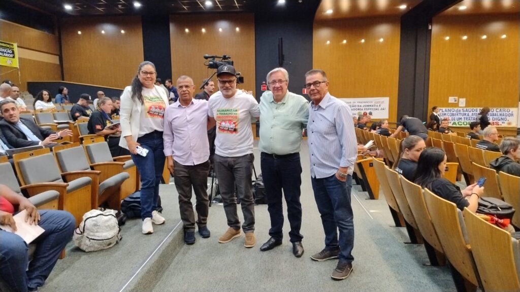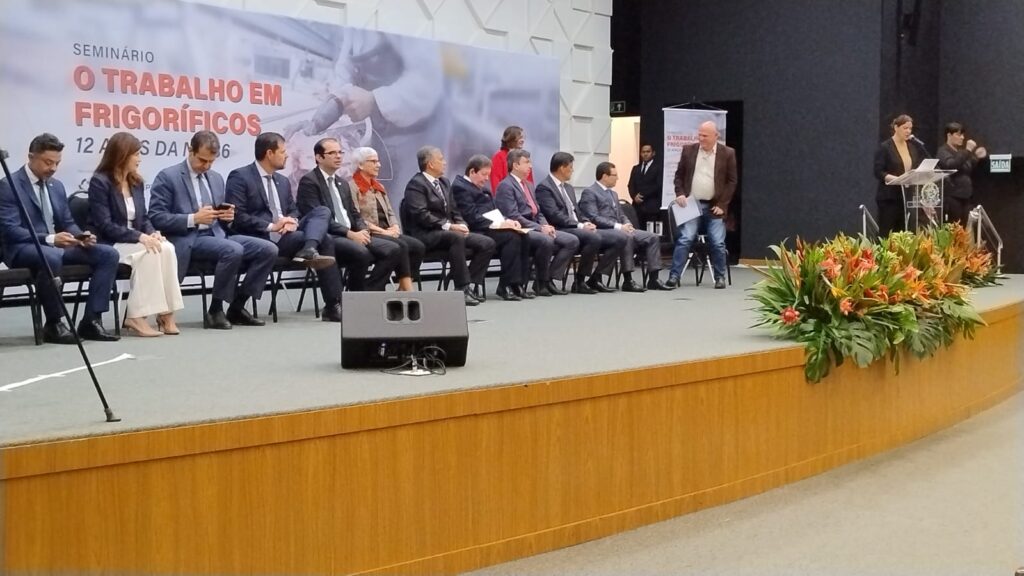 Durante o seminário, Osvaldo Teófilo esteve ao lado de representantes do Ministério Público do Trabalho (MPT), do Ministério do Trabalho e Emprego (MTE), do Tribunal Superior do Trabalho (TST), além de deputados federais que se posicionaram favoravelmente ao debate e ao avanço de políticas públicas que favoreçam os trabalhadores do setor de frigoríficos.