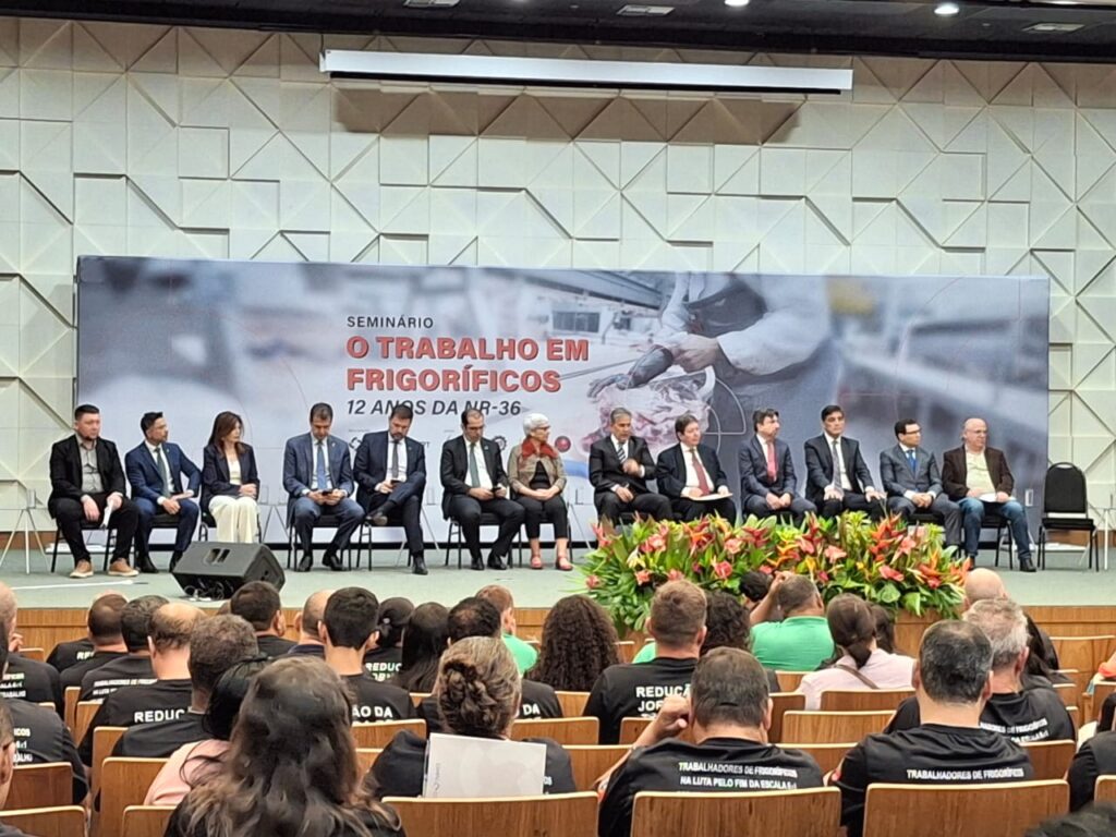 O encontro reuniu trabalhadores e lideranças sindicais de diversas regiões do Brasil com o objetivo de debater as condições de trabalho no setor frigorífico e buscar caminhos conjuntos para avançar nas pautas relacionadas à saúde, segurança e à jornada de trabalho.